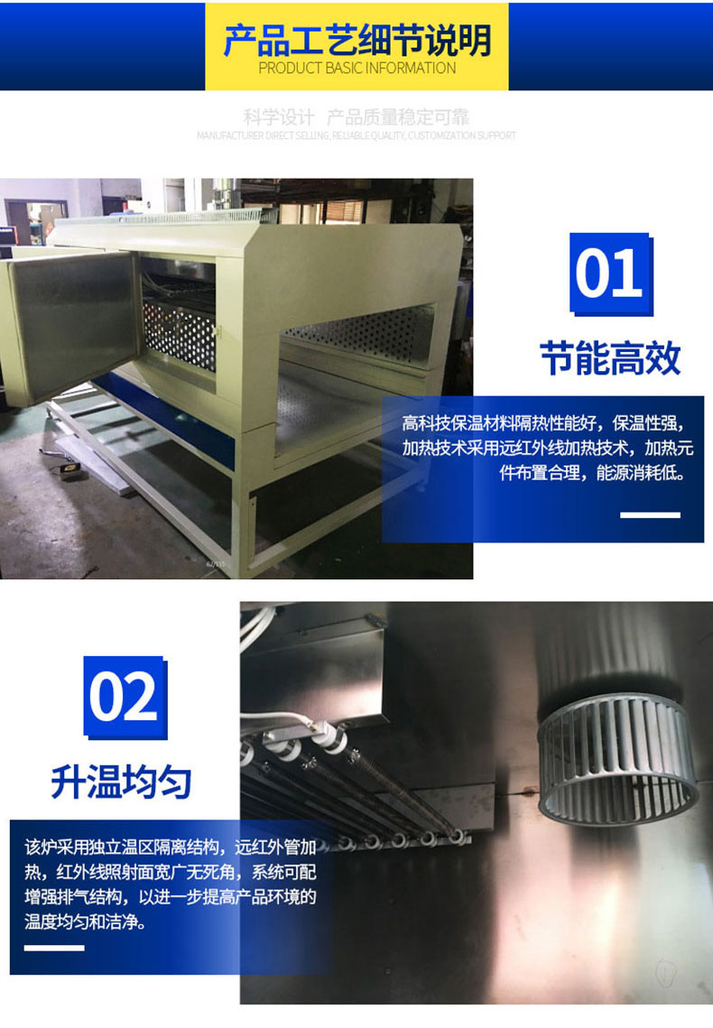 【產(chǎn)品優(yōu)勢(shì)】:智能操控,節(jié)能省電,紅外線烘烤,高溫烘烤,按需定制